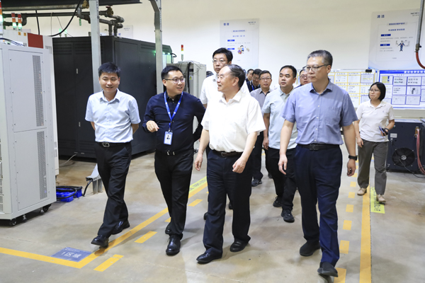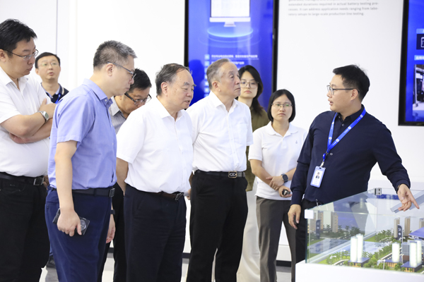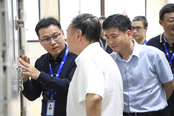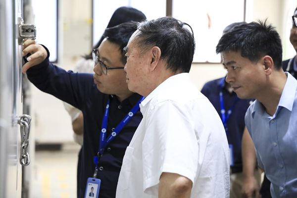 随后,调研组一行深入星云检测实验室,系统性地观摩、了解了从电芯到电池包、从硬件到软件的全链条检测工序,并详细察看了星云股份自主研发的高精度充放电测试设备模拟不同工况、不同环境条件下,精准评估电池的容量、电压、电流、内阻及循环寿命等核心数据的具体过程。周济院士在考察中驻足观察设备工作,深入询问技术细节,对星云股份在锂电池检测高端装备领域取得的创新成果表示充分肯定。他指出,当前全球制造业正加速向数字化、网络化、智能化迈进,星云股份作为国内锂电池检测行业的领军企业,应进一步强化自主创新能力,深化人工智能、工业互联网等技术与行业的融合,推动中国制造迈向新高度。