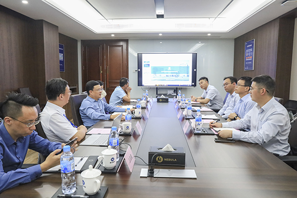 刘震博士向刘安民一行介绍星云股份的创新成果